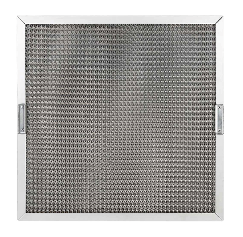 由不同規(guī)格的波折鋁網(wǎng)組成,交錯放置于內(nèi)框中;減少了鋁網(wǎng)間的空隙,起到更好的過濾;對于酸、堿或耐高溫的環(huán)境,可選用不銹鋼外框及不銹鋼波折網(wǎng)制作。